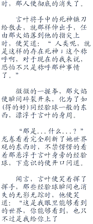 不过言叶也差不多听明白了,简单来说,楪祈就如同炮姐的那妹妹们一般的存在,都是因为实验突然中断的产物...