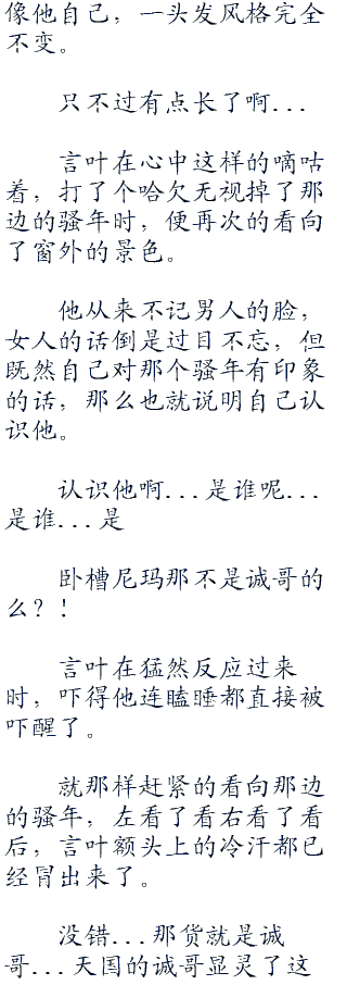 就那样坐在木质地板上,手拿着那屏幕,一副似乎是在等着什么的言叶,在身旁楪祈那更加疑惑的注视之下,终于的看到了一条更新——