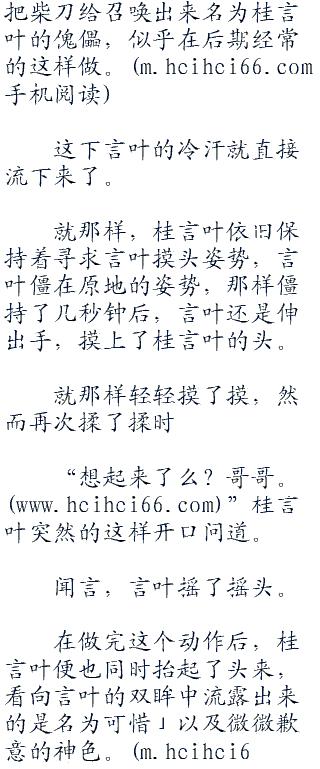 见着那虚空的光带从那剑身上开始回归于楪祈的体内时,猫耳娘去在看向言叶身后的那如同地狱般的场景之时,似乎是忍受不了的微微的将实现撇开,而后在猛然的呼了口气时,开口道:“你...还真是不怕晚上做噩梦啊...”
