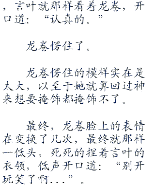 然而,言叶表示我尼玛就是拿出个屏幕,然后和楪祈妹纸那边聊了会天,边聊边走然后确定好了在一个地方会和之后,言叶他们就会和了。看█毛█线█小█说