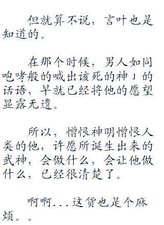 言叶在话语落下,心中这样想着,不禁有些哭笑不得只是,他便只听见猫耳娘那边再次的传来了话语——