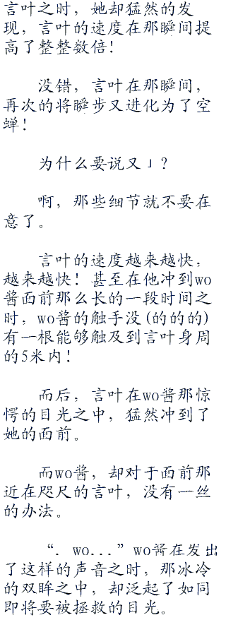 这如同小孩子一般之间的拉钩约定,对于言叶没说来说没有任何的约束条件,不过那对于樱满真名这样的小女孩来说,却是异常的高兴的一件事情。看●毛●线●小●说