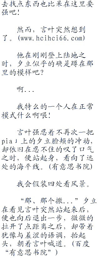 要是大人的话,绝对会走上前来,然后和自己一同感概着对吧,这里真的很漂亮呢,能够让人莫名的放松下来呢的话语,然后言叶再次的开口道不,我说的是你哦的展开。