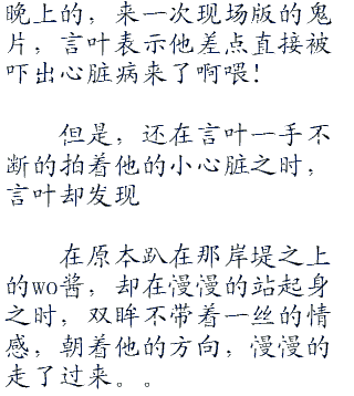 不过要是真这样说出来,估计他们就想要上来呼自己一脸了,所以为了考虑到自己那英俊的外貌,言叶还是放弃了。看╮毛╮线╮小╮说