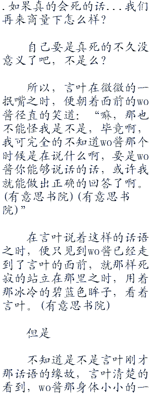 于是如此阴差阳错的,言叶倒是与death守墓者慢慢的混熟了起来。