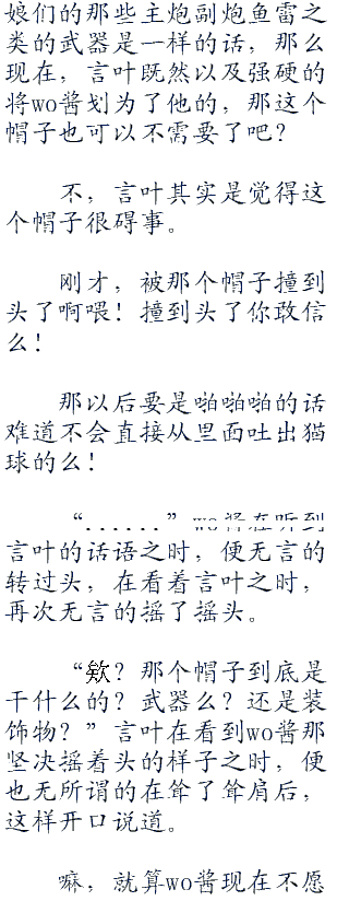在猫耳娘在点了点头的表情之下,言叶便笑着伸出手摸了摸猫耳娘的头,在这唯一一次没有拒绝的抚摸之下,言叶便就笑着开口道:“我啊,可不希望你们受伤的啊。”