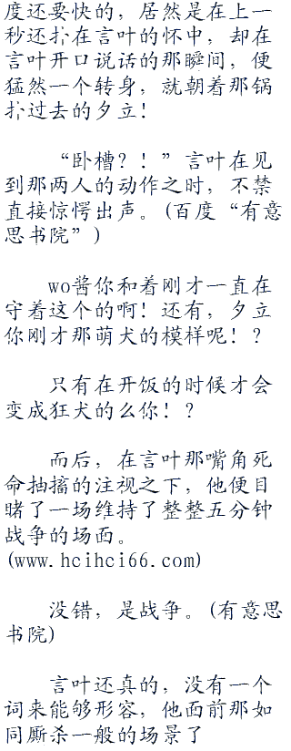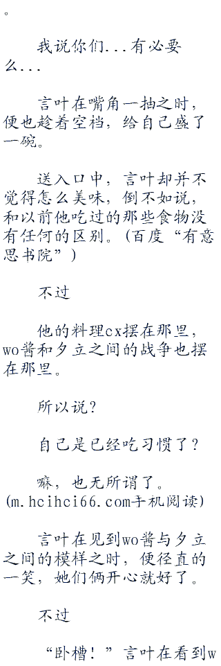 所以就连言叶在晚上下楼兴高采烈的和着她们打招呼,喊着我回来了!!!的话语之时,所见到的便是如刀般的眼神。