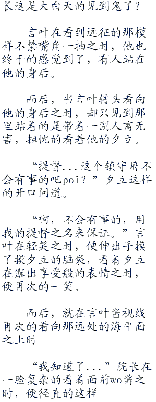 虽然想着2.5一些毫无边际的话语,言叶却开口道:“愿望?那种东西啊——我要这天,再遮不住我眼。我要这地,再埋不了我心。要这众生,都明白我意。要那诸佛,全都烟消云散!”