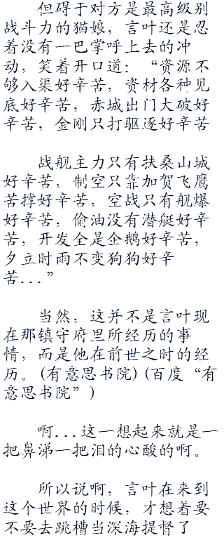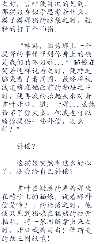 不过这句话要是被那妮子听到了的话,估计又会暴走了吧——比如说用头上的那两根呆毛甩自己脸什么的。看△毛△线△小△说