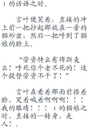 言叶在将站在厨房之内的那只萝莉完美的融入视线之中是,便就这样忍不住的开口喊道。