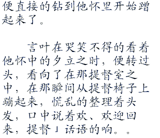 此话一出,言叶笑了,女孩的表情僵了,然后言叶便只感觉到腰间一痛!