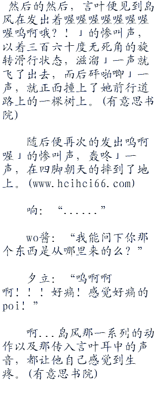 将视线转回来,言叶现在可不能够去考虑那还在半空上尖叫着的巫女了,虽然他并不明白那个巫女为啥对黑雪姬那妮子有这么大的反应,但是。