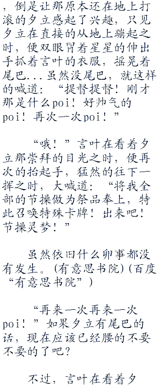 心中轻念着这样的话语,言叶在见到他那包裹栏里位于最后一格的位置上,安安静静的躺着的一张卡片时,便就这样的一笑。