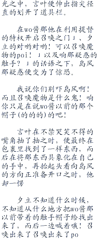 言叶现在一个哈欠连着一个哈欠,就是那妮子一手造成的。