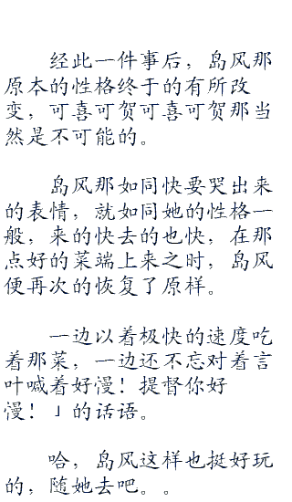 世界在那瞬间开始变化,从原本的画面开始定格,而后再次变为青色,直到连青色也一起消散而去时,言叶便就回到了现实之中——以着趴在地板上的姿势。