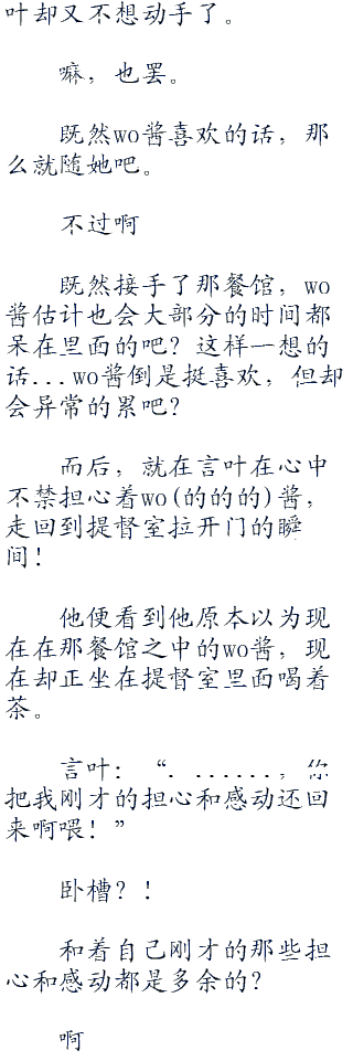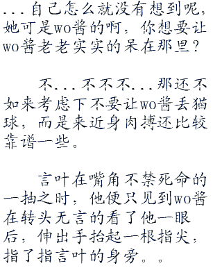 而后,0.3就在言叶准备放手,那中二病骷髅骑士开始大喊着等下!等等等等等!!!雅蠛蝶!!!的时候——