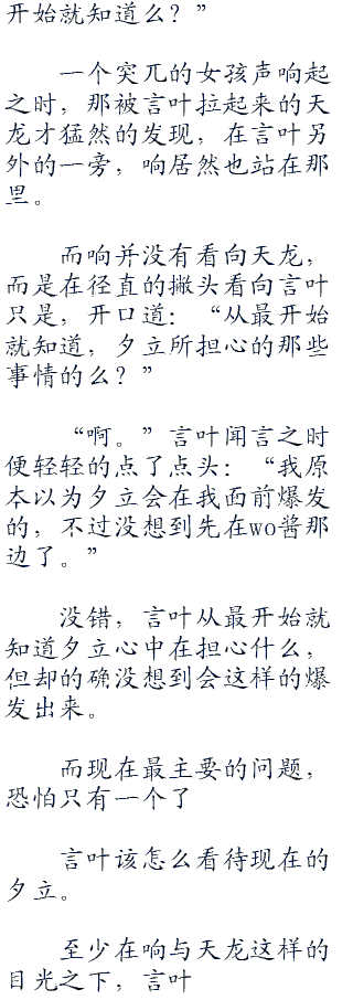 在言叶一边喝着茶,一边安慰着那似乎被吓到的四埜宫谣之时,枫子便就将她与言叶在无限制中立空间中发生的事情,叙述了一遍。