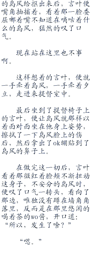 仁子就那样低着头,双手背在身后死死的攥紧,言叶完全的看不到仁子现在的表情是什么样的时。