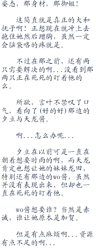 言叶虽然觉得不需要那么麻烦,但却也突然觉得这个游戏似乎有点有趣。