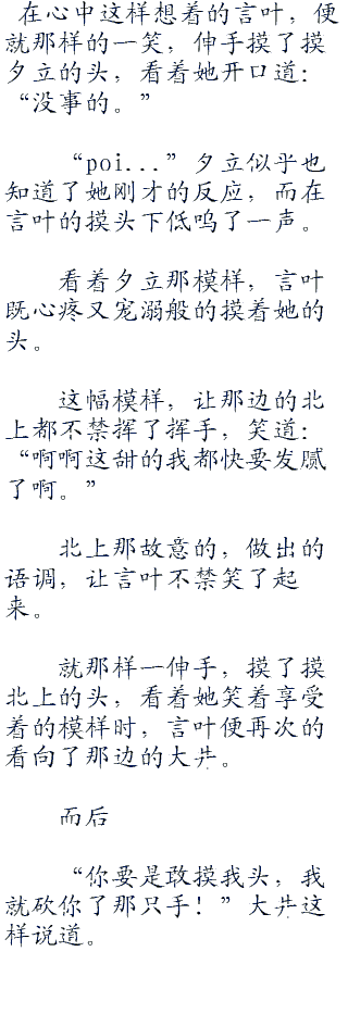 在听到他们居然开始揣测起言叶时,雅儿贝德便在瞬间忍不住了。看*毛*线*小*说
