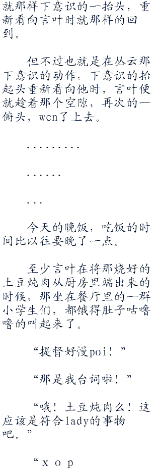 要知道言叶的本职可是战士来着,而且刚才就那胡乱挥了几剑就让一个王国的战士长说出这样的评价,不禁让他觉(钱的好)得好笑。