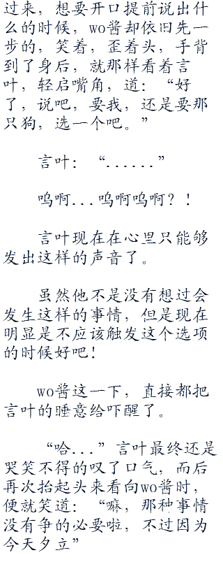 所以言叶在说给她们说现在不是担心这个的时候,而是情报完全不住的情况,所以你们趁这个机会也去找找线索找找情报吧,这是命令。