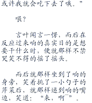 克莱门汀一边说着,一边做出了如同害羞般的动作时,却见到言叶就只是站在那里,什么反应都没有就那样看着她。