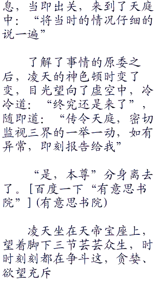 就连天庭中凌天的分身也惊动了,瞬间赶去了混沌中心。