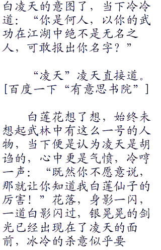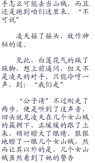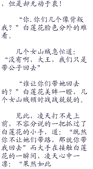 “叮叮叮”一阵响声后,白莲花等山贼全都拔出了宝剑指向了凌天。
