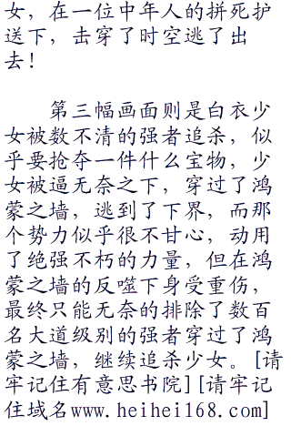 而第二幅画面却是,一大片黑衣人从天而降,恐怖滔天的力量从苍穹坠落,无穷无尽的火焰,燃烧了整座山脉,将所有人都杀死了,只有那位白衣少