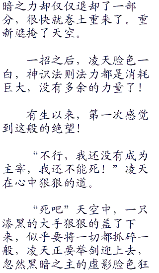 黑暗之主脸色再变,这一击的力量比之前的一击又强了不止一倍,这样下去,最终的一击会有多强,简爱那次,黑暗之主不再拖下去,发动了大阵,全力以赴,炼化凌天。