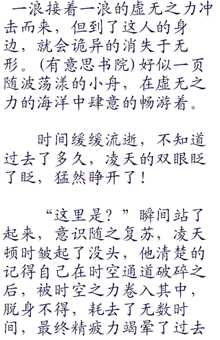一片未知之地,银白色的时空之力流逝,一个巨大的漩涡在旋转着,其中一道人影静静的流淌在其中。