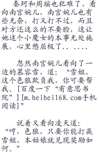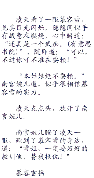 凌天知道她想赖账,不过也不在意道:“婉儿姑娘如此的刁蛮可爱,我想一定是姓南宫了。”