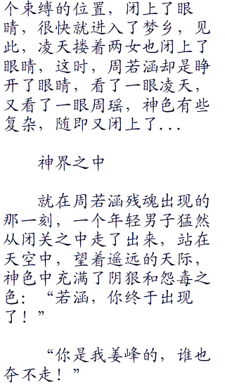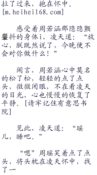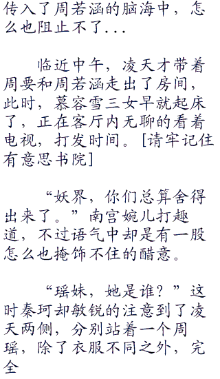 凌天点点,看向周若涵道:“今晚就留在这里”看到周若涵脸色一变,凌天又道:“放心,我不会对你做什么的。”说着伸手将周瑶抱起,放到了另一边,再伸手将周若涵