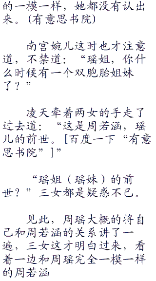 周瑶笑着道:“以后若涵姐姐就和我们一起了”周若涵也是点了点头。