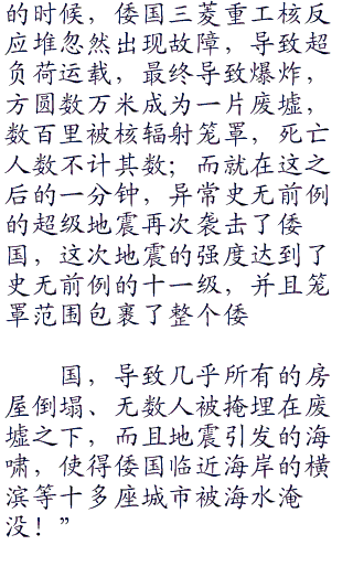 “轰”涛涛浪声,几乎瞬息间,无边的海水倒灌而入,将临海的陆地全部淹没,一座座城市全都浸没在了冰冷的海水中,无数的人在哭泣、惨叫...