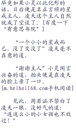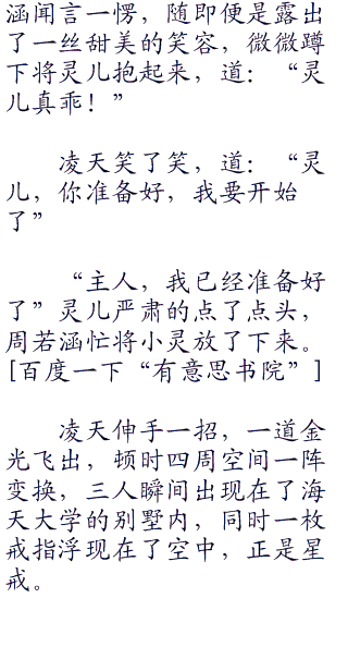 凌天道:“这是自然,既然你是星戒的器灵,我便点化星戒,让你化形!”