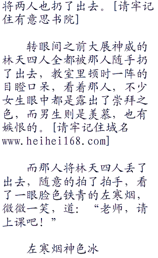 很快三分钟时间到了,左寒烟扫了全教室一眼,冷冷道:“很好,还有七个留下来挑衅我,另外还有四个第一堂就缺我课的!”