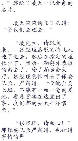 秦珂点了点头道:“嗯,据说这次的拍卖会将有一件神奇的宝物拍卖,到时候全世界基本上有头有脸的势力都会派人来参加!”