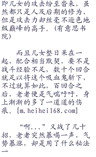 几女点了点头,也不打招呼,直接拿起兵器就冲了过去,那老者一愣,待看清了几女的实力后便是露出了一丝不屑的神色,心中也是大喜,这样冲过来,自己岂不是很轻易的就能够完成任务了!