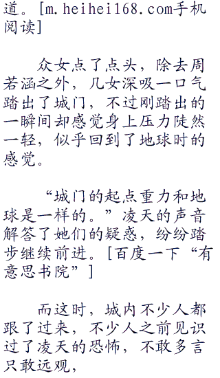 来到了城门之前,凌天停下了脚步,对几女道:“就是这里了,这做城池建的很奇妙,从这里向外走,每走出十米,重力会增加一倍,除了一些顶尖的高手外,其他的人想要离开这里只能用航天器。”