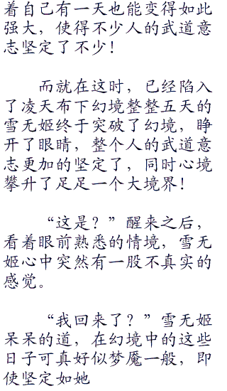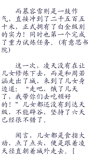 第五日正午,修炼了整整五天的几女先后睁开了眼睛,眼含精光,一看就是实力大进的表现。其中慕容雪再进一步修成了地级巅峰,差一点就到天级了,周瑶几女则是一鸣惊人,连连突破了两个境界,现在也是地级后期了,和慕容雪的差距第一次拉近了。