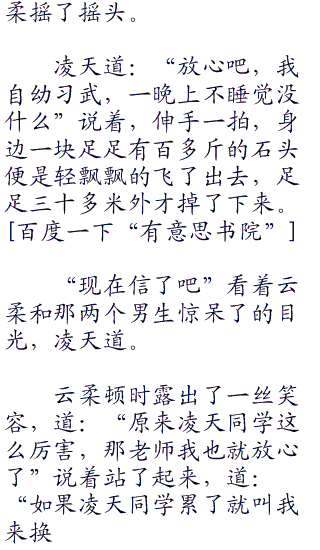 又说了一些注意事项之后,云柔的目光望向了凌天道:“凌天同学,据说你会武术,到时候还请多多注意一下!”