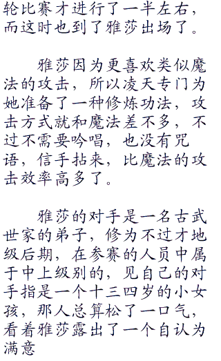 比赛继续进行着,之后的比赛,魏峰、左云飞、萧白相继登场,三人都是天级中期的实力,第一轮比赛都顺利的通过了,直到地轮比赛开始。