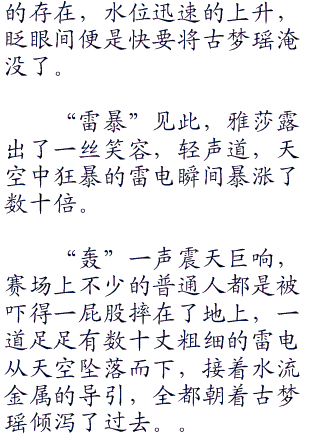 到现在为止已经是苍白如纸了,但是玄明还在坚持,准备聚集更多的雷电之力,争取一招制胜,不然一招之后,他就没了力气,只能任人窄割了!