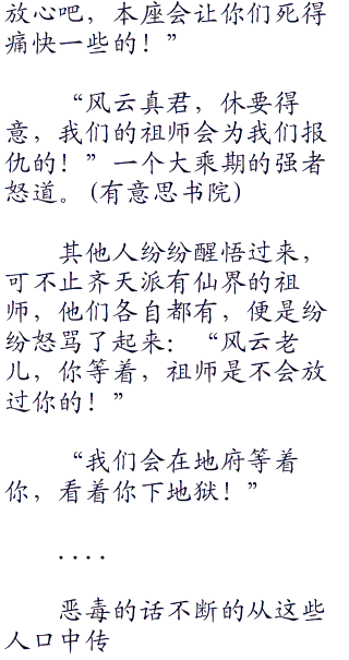 看着这些人放弃了抵抗,面露绝望之色,风云真君更加的得意了,道:“