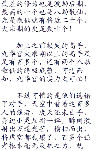 这是九华宫的护山大阵,因为之前齐天派的遭遇,让修真界各大势力人人自危,一有风吹草动便是最高戒备,所以才有了眼前这一幕!