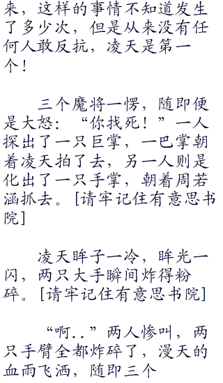 看着四方杀来的魔兵,凌天冷笑了一下,心念一动,所有的魔兵全都倒飞,被莫名的力量击中,在空中炸开,血肉撒了一地,不少人都被浇了一身。