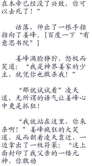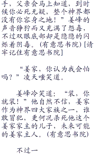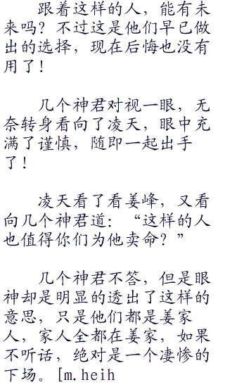 “他不过刚刚飞升的神人,难道还是神帝神皇不成”姜峰怒喝道,冰冷的目光让几个神君心中一寒,知道再不去,自己等人恐怕没什么好下场了,只能低头领命道:“是”不过眼中却是充满了愤怒和憋屈,还有着失望和后悔!