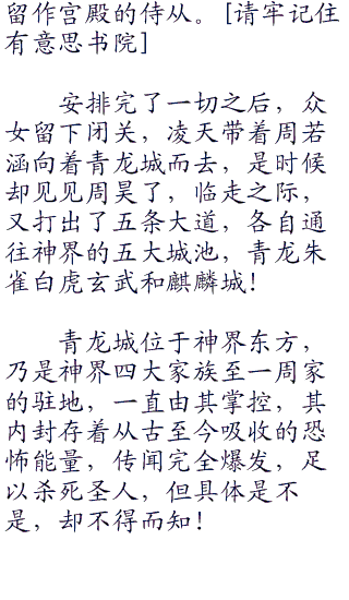 众女这些年的修为已经到了神将顶峰,但是想要再向上走,就必须要时间的积累,不知道要多久,而且凌天也没有完全的悟透这个宇宙的真意,要完全的明白也不知道是什么时候,所以凌天还是决定在神界打造自己的行宫,不过最后想了想还是建造了一座城池!